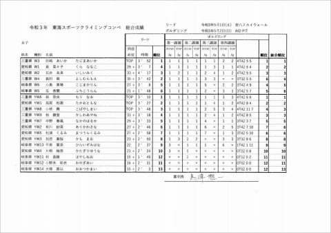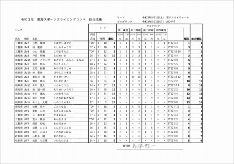 令和3年度年東海 スポーツクライミング コンペ リザルト(速報)